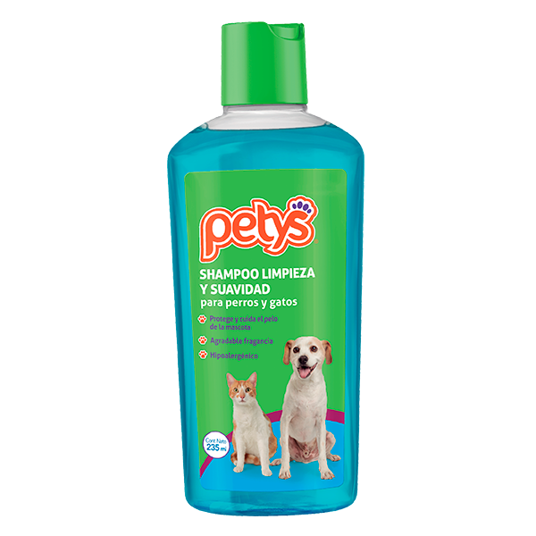 El Shampoo Petys Limpieza y Suavidad es la opción ideal para mantener limpios, lindos y saludables a tus mascotas tanto perros como gatos; ya que comprende el aseo como un cuidado integral para todos los peluditos al pensar en sus necesidades y requerimientos sin importar el tamaño, raza o edad de la mascota al remover toda la suciedad de su pelaje y piel.